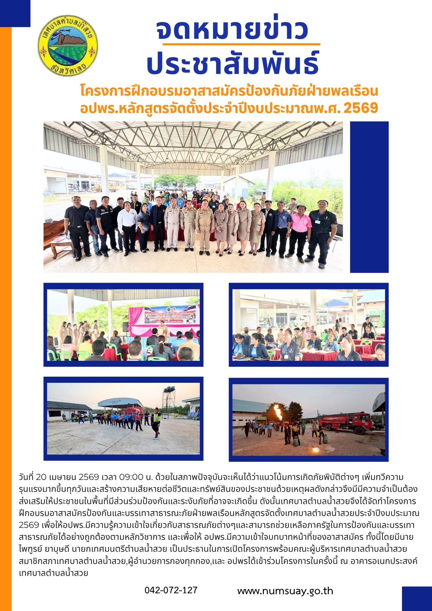 โครงการฝึกอบรมอาสาสมัครป้องกันภัยฝ่ายพลเรือน อปพร.หลักสูตรจัดตั้งประจำปีงบประมาณพ.ศ. 2569