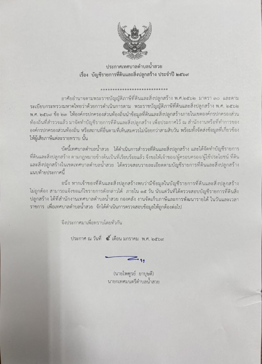 บัญชีรายการที่ดินและสิ่งปลูกสร้าง ประจำปี 2569 |