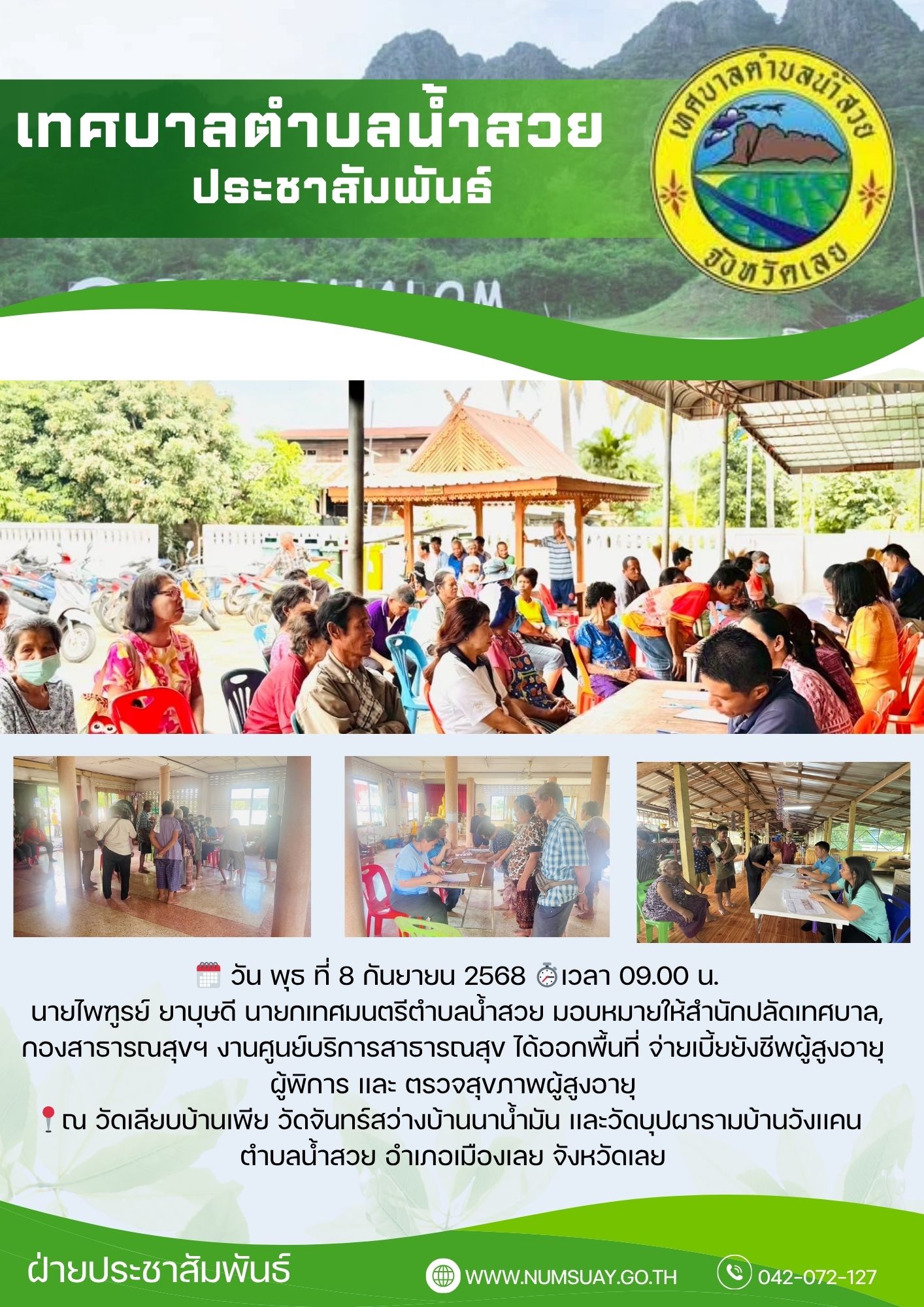 จ่ายเบี้ยยังชีพผู้สูงอายุ ผู้พิการ เเละ ตรวจสุขภาพผู้สูงอายุ