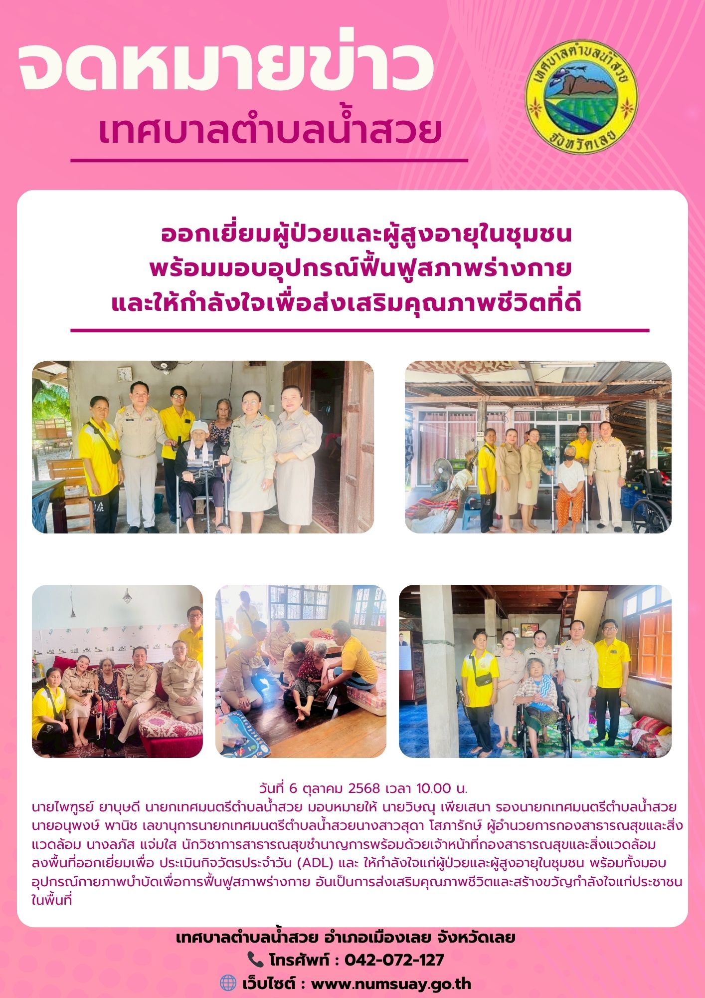 ออกเยี่ยมผู้ป่วยและผู้สูงอายุในชุมชน พร้อมมอบอุปกรณ์ฟื้นฟูสภาพร่างกาย และให้กำลังใจเพื่อส่งเสริมคุณภ�
