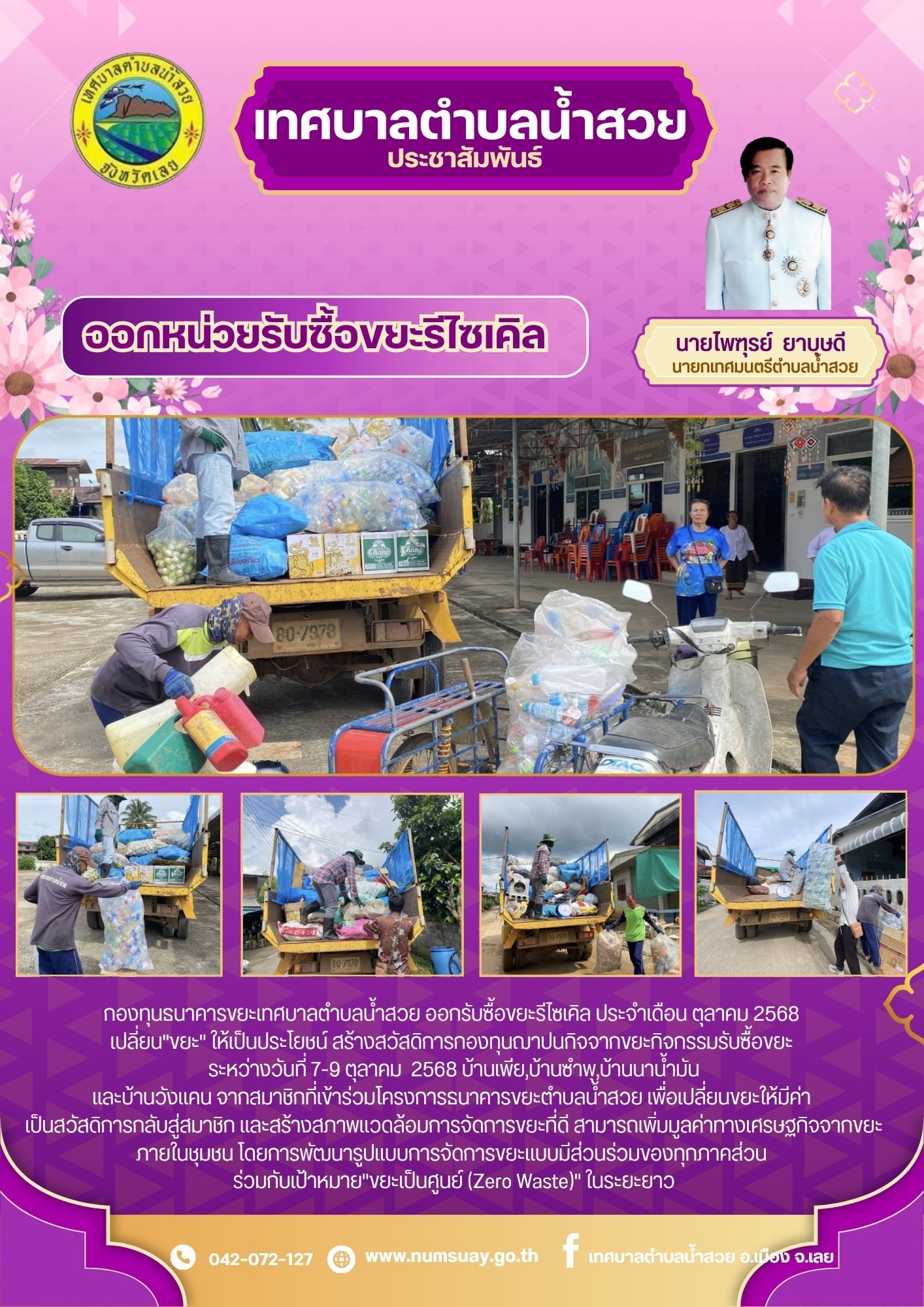 ออกหน่วยรับซื้อขยะรีไซเคิลประจำเดือนตุลาคม