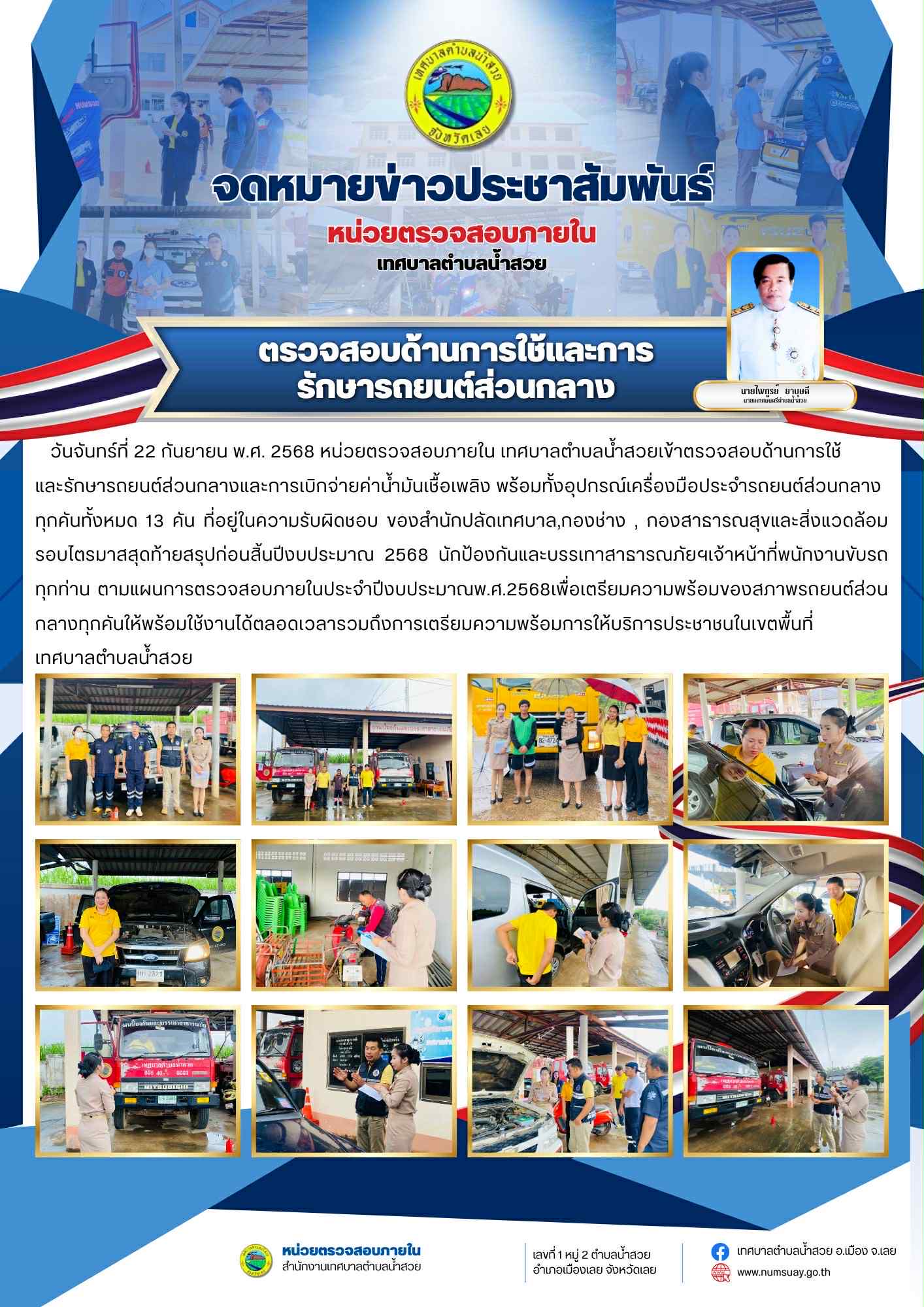 หน่วยตรวจสอบภายใน เข้าตรวจทาน/ตรวจสอบ สภาพรถยนต์ส่วนกลาง